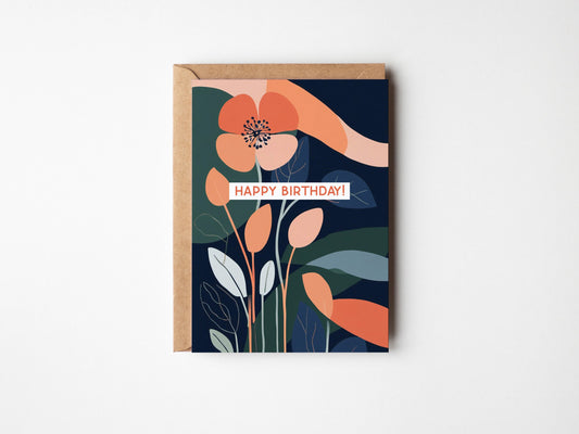 Floral Birthday Card - Coral Navy Botanical Celebration