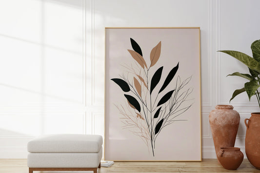 Botanical Leaf Print Autumnal Wall Art in Minimalist Boho Style