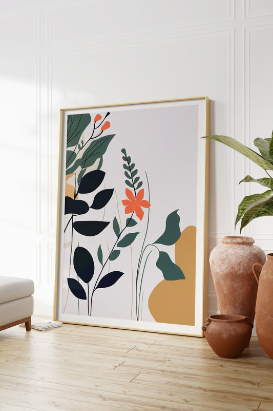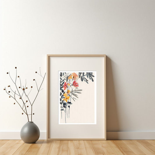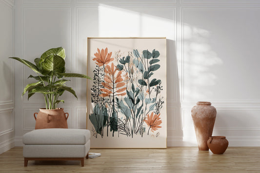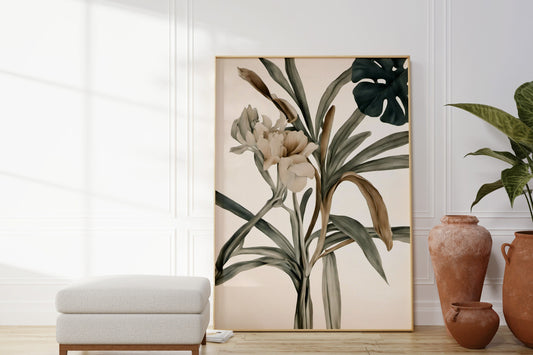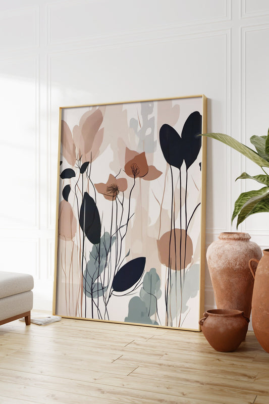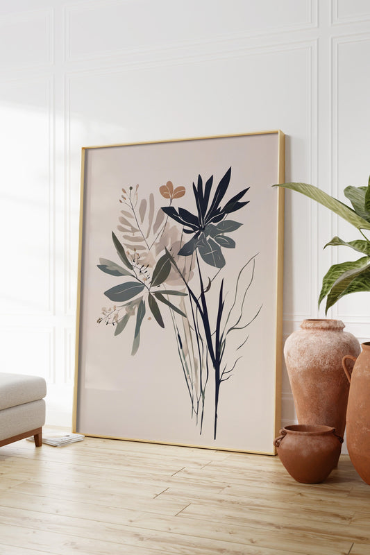 Botanical Floral Wall Art - Neutral Minimalist Print for Contemporary Decor
