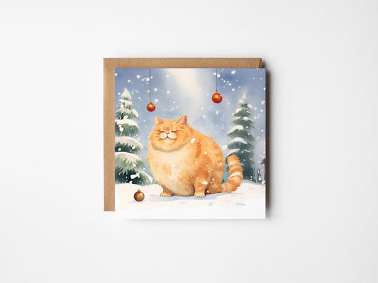 Christmas Card - Rotund Ginger Cat - Square Design for Cat Lovers
