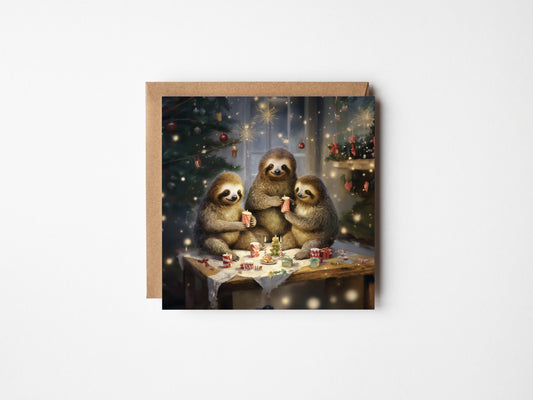 Sloth Family Christmas Card - Square Quirky Traditional - Animal Lover Gift