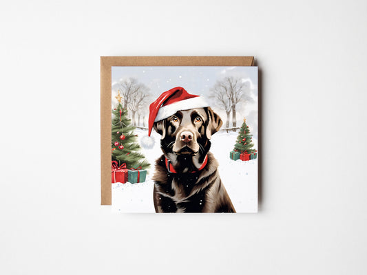 Chocolate Labrador Christmas Card - Square Dog Lovers Card