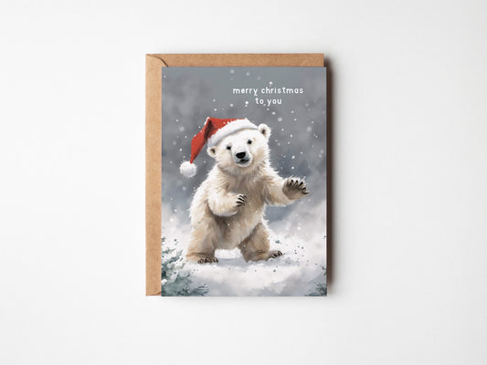 Polar Bear Christmas Card - Rectangular - Animal Lovers Xmas Card
