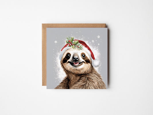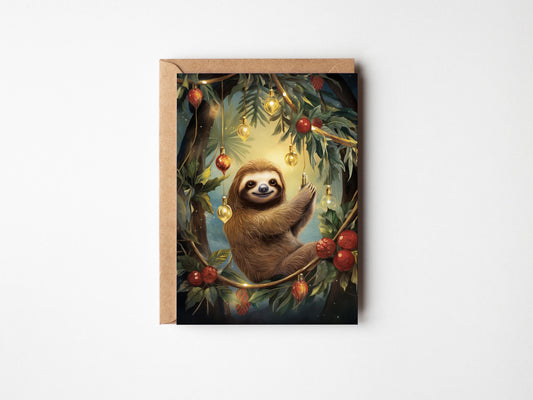 Cute Sloth Christmas Card - Quirky Jungle Holiday Greeting Card