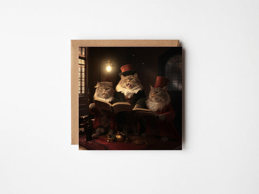 Singing Cats Christmas Cards - Victorian Cat Carol Service - Square Card - Pack of Ten
