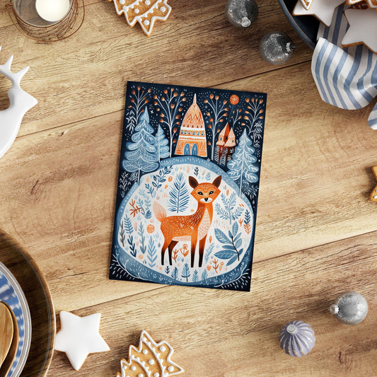 Folk Art Deer Christmas Cards - 5 Pack of Xmas Cards
