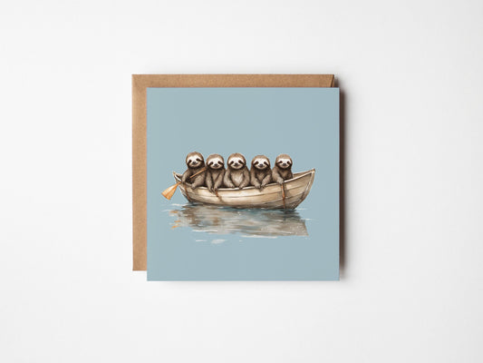 Baby Sloth Boat Greetings Card - Blank Square Card
