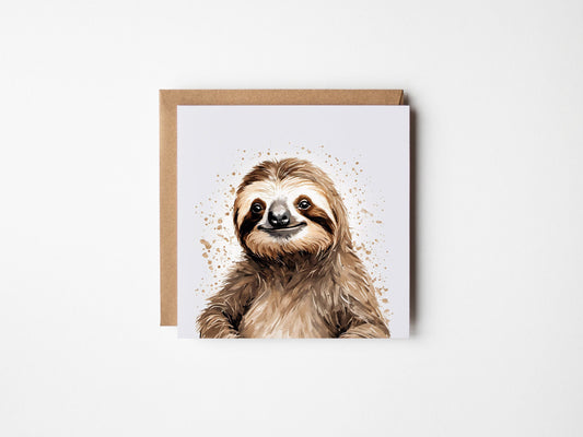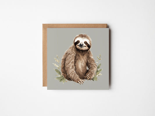 Sloth Greetings Card - Blank Square Kraft Envelope - All Occasion