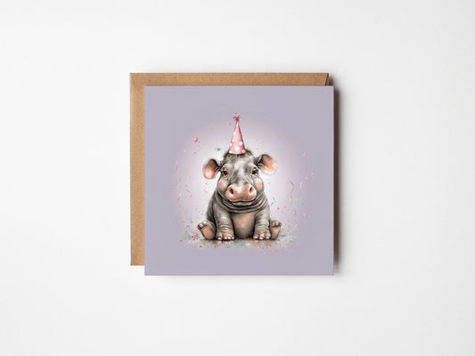 Baby Hippo Greetings Card - Illustrated
