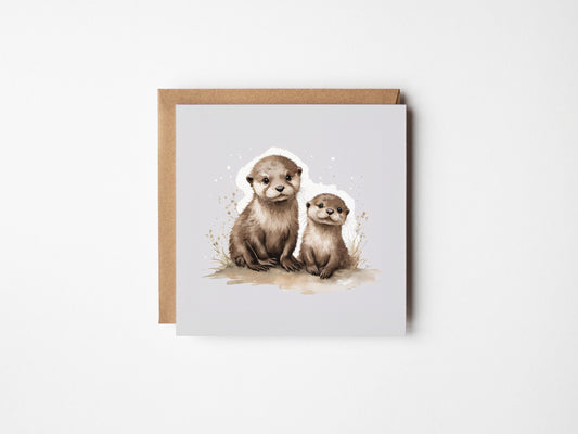 Baby Otter Greetings Card - Blank Square Card