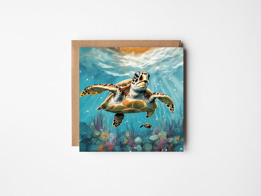 Underwater Turtle Greetings Card - Blank Square Card