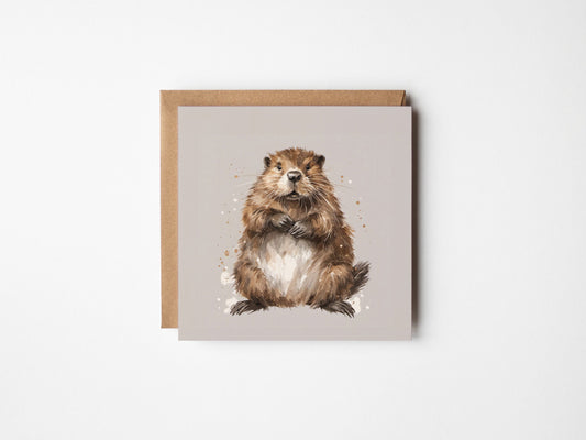 Beaver Greetings Card - Cute Illustrated Blank Square Card