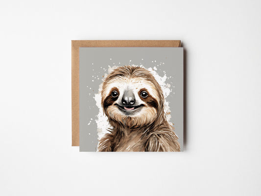 Happy Sloth Greetings Card - Blank Square