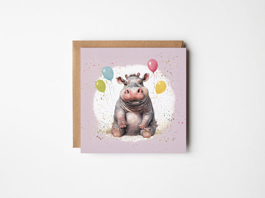 Hippo Balloon Greetings Card - Square Blank for Any Occasion