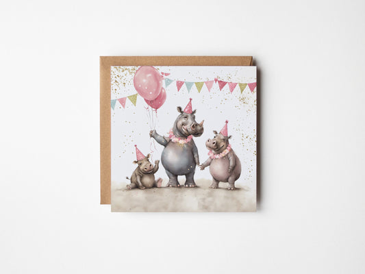 Hippo Family Party Greetings Card - Blank Square Card