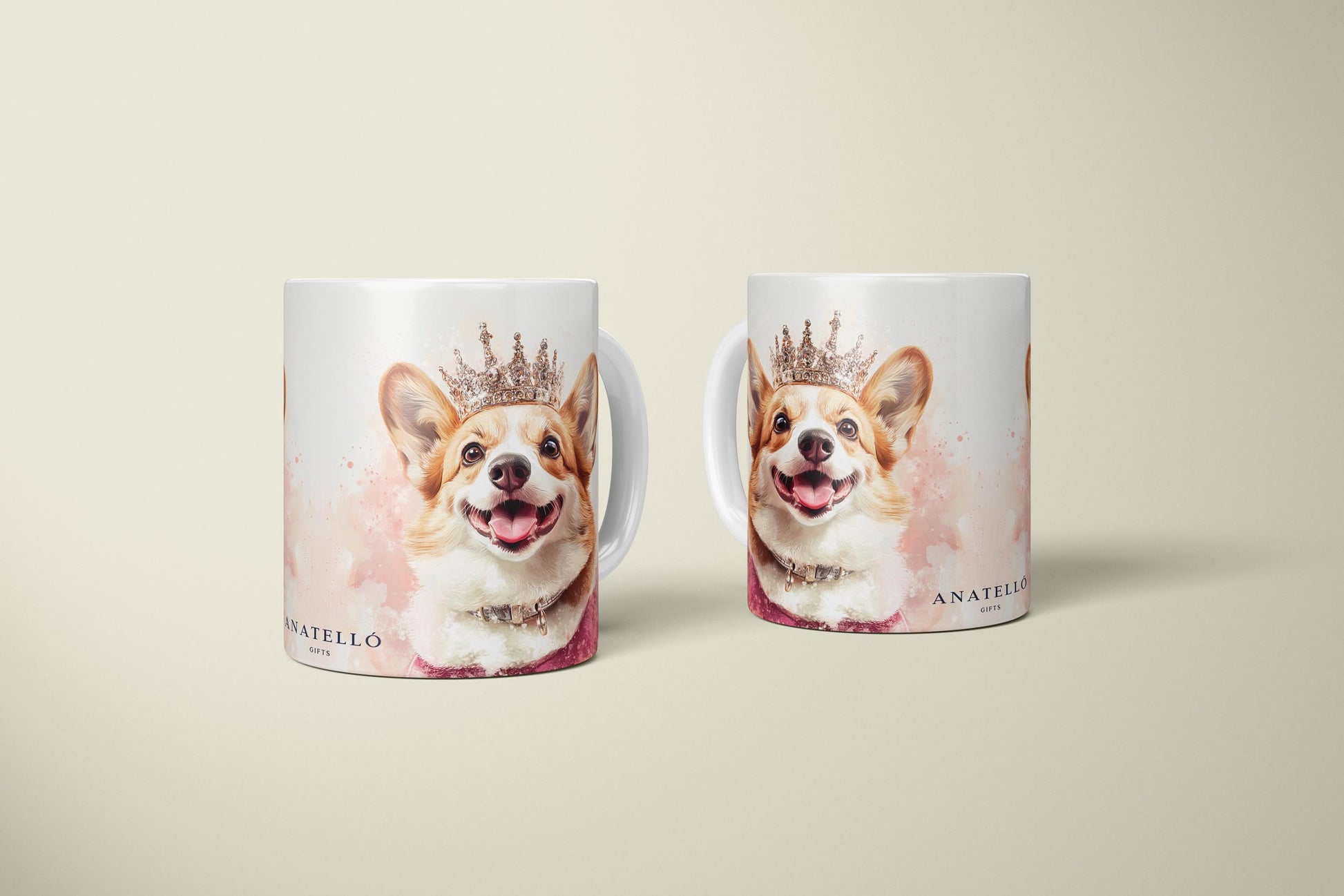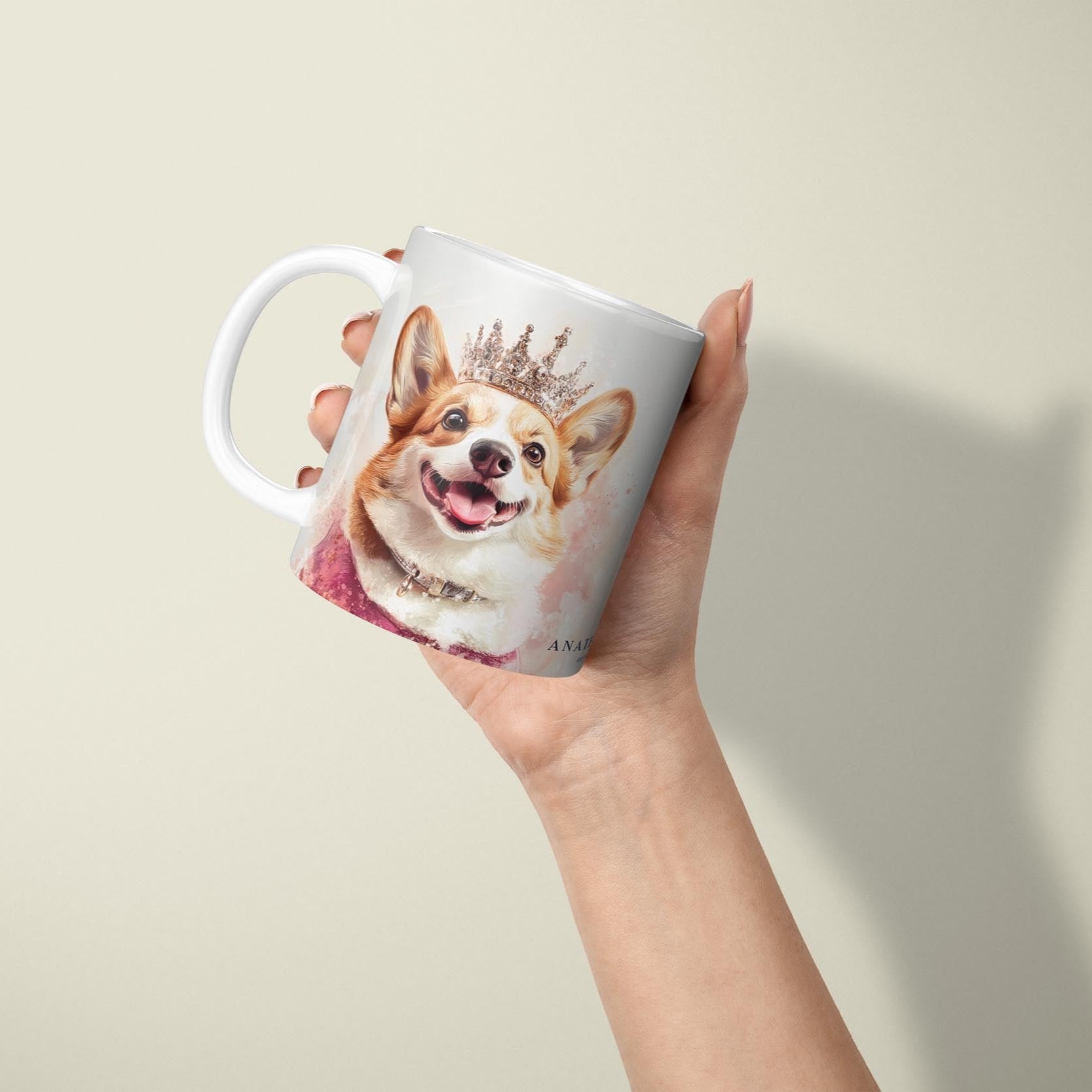 Princess Corgi Coffee Mug - This beautiful ceramic mug is perfect for any event of the day. Your morning coffee, a hot chocolate, or any other hot beverage you enjoy. The mug is glossy white and the prints come out beautifully and vividly on it. The print retains its quality and luster when used in both microwaves and the dishwasher.